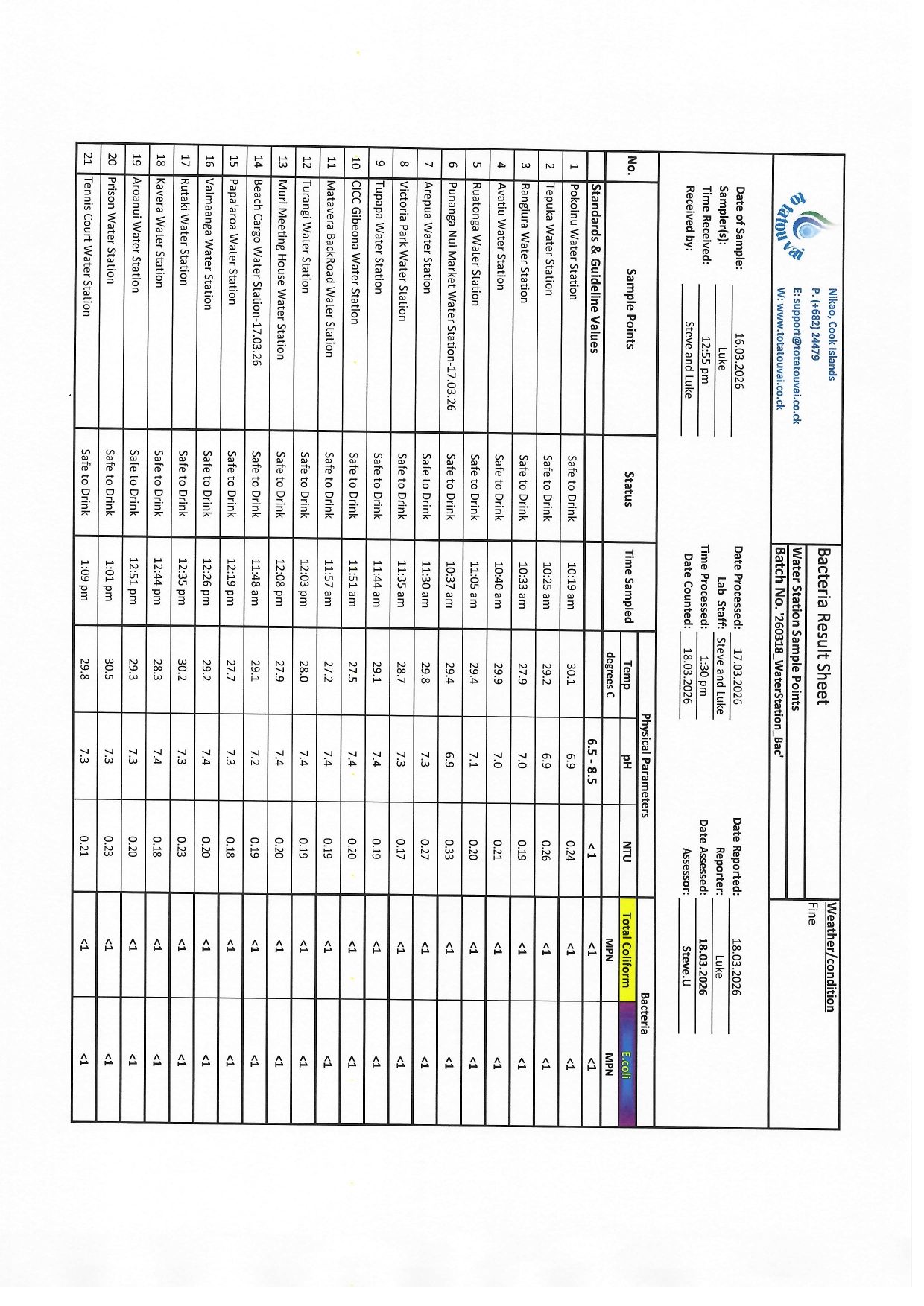 Water Station Test Results